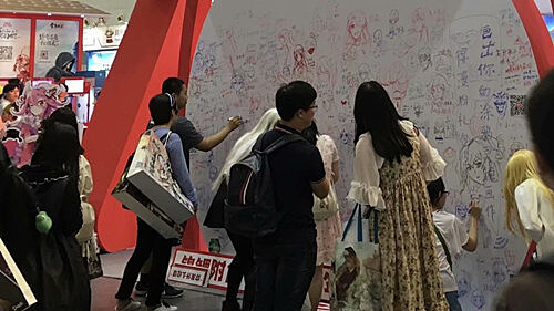 粉丝在签绘墙上作画涂鸦